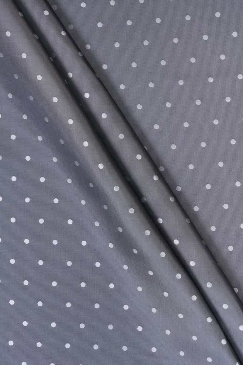 Italienisches Jacquardfutter aus zwei Fädenfarben, Schwarz und Silber, die einen zweifarbigen Effekt erzeugen. Stoff mit einem seltenen Motiv von Erbsen mit einem Durchmesser von 0,5 cm. Das Futter ist unflexibel mit einem sehr edlen Glanz, es kann beidseitig genäht werden. Seine natürliche Zusammensetzung macht es ideal als Futter für eine Jacke oder einen Mantel.
