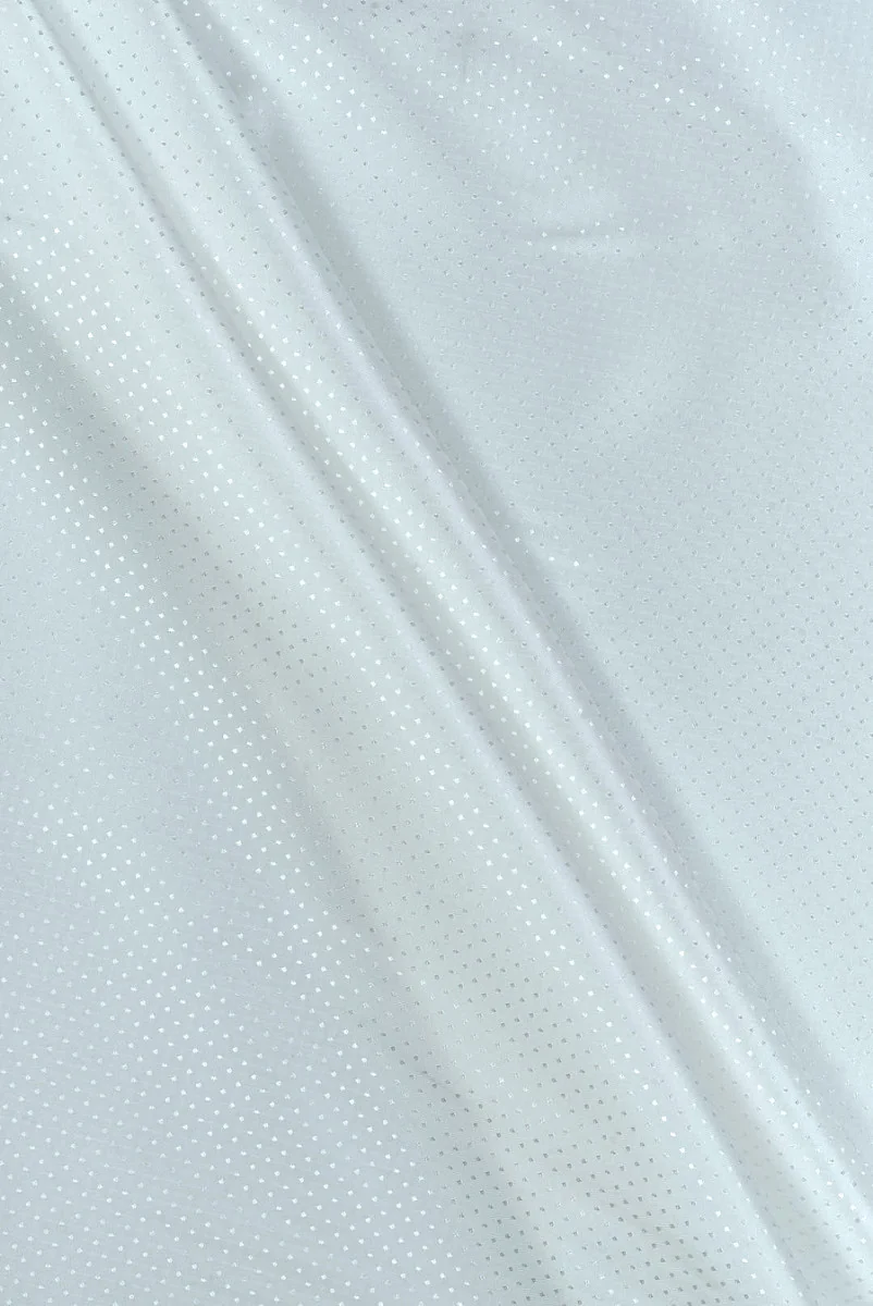 Italienisches Jacquardfutter in cremefarbener Farbe mit einem Motiv aus kleinen Punkten. Ein zartes und klassisches Muster, das zu vielen Outfits passt. Unelastischer Stoff, leicht glänzend. Ideal zum Futter von Mänteln, Jacken, Westen, Jacken.