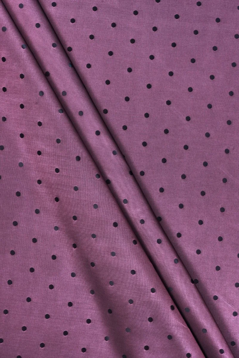Italienisches Jacquardfutter mit regelmäßigem Polka-Dot-Motiv, hergestellt aus zwei Garnfarben: Rosa und Graphit, die einen zweifarbigen Effekt erzeugen. Die Größe eines Punktes beträgt 5 mm. Unelastischer Stoff, leicht glänzend. Ideal zum Futter von Mänteln, Jacken, Westen, Jacken.