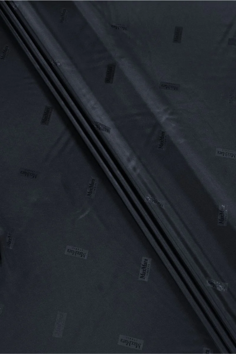 Italienisches Jacquardfutter aus 100% Viskose in sehr dunklem Marineblau (fast schwarz), signiert mit dem Namen des bekannten italienischen Modehauses. Das Futter ist unelastisch mit einer Köperbindung (Köperbindung) mit einem sehr edlen Glanz. Seine natürliche Zusammensetzung macht es ideal als Futter für eine Jacke oder einen Mantel. Ein fantastisches Angebot für Menschen, die Markenstoffe mögen.