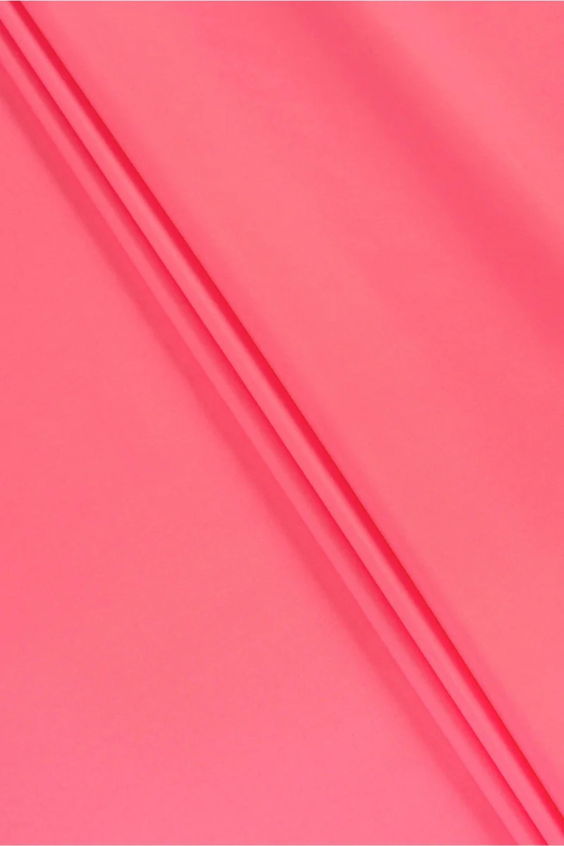 Italienischer Baumwollstoff mit Zusatz von Elasthan in Bonbonrosa. Ein elastischer Stoff mittlerer Dicke und einer leicht geköperten, matten Webart, der zum Nähen eines Kleides, eines Rocks oder einer Hose bestimmt ist. Natürlicher Stoff von sehr guter Qualität, der Zusatz von Elasthan macht ihn angenehmer zu verwenden und knittert weniger. Ein unersetzlicher Stoff im Frühling und Sommer.