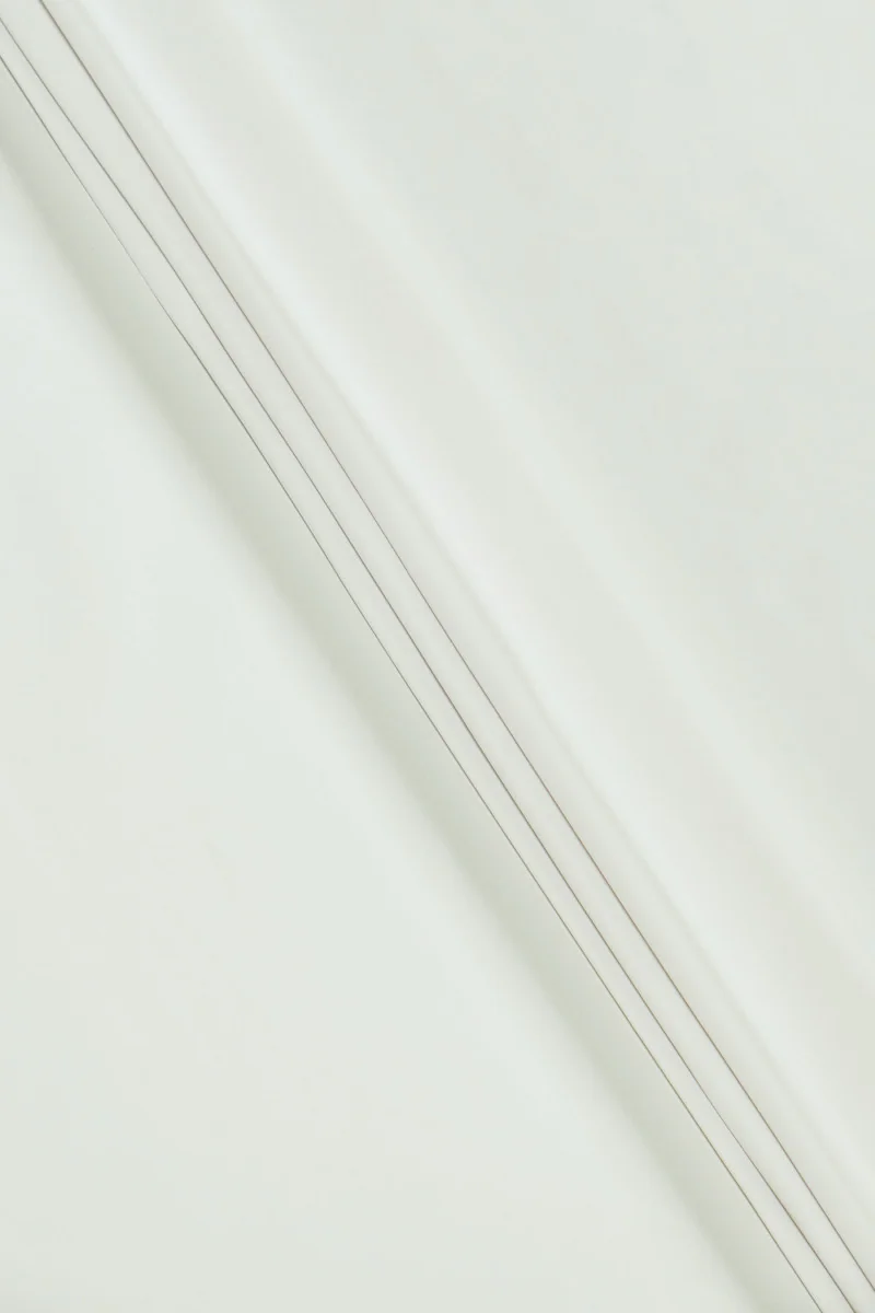 Italienischer Baumwollstoff mit Zusatz von Elasthan in der Farbe Ecru. Ein elastischer Stoff mittlerer Dicke und einer glatten, zart glänzenden Webart, der zum Nähen eines Kleides, eines Rocks oder einer Hose bestimmt ist. Natürlicher Stoff von sehr guter Qualität, der Zusatz von Elasthan macht ihn angenehmer zu verwenden und knittert weniger. Ein unersetzlicher Stoff im Frühling und Sommer.