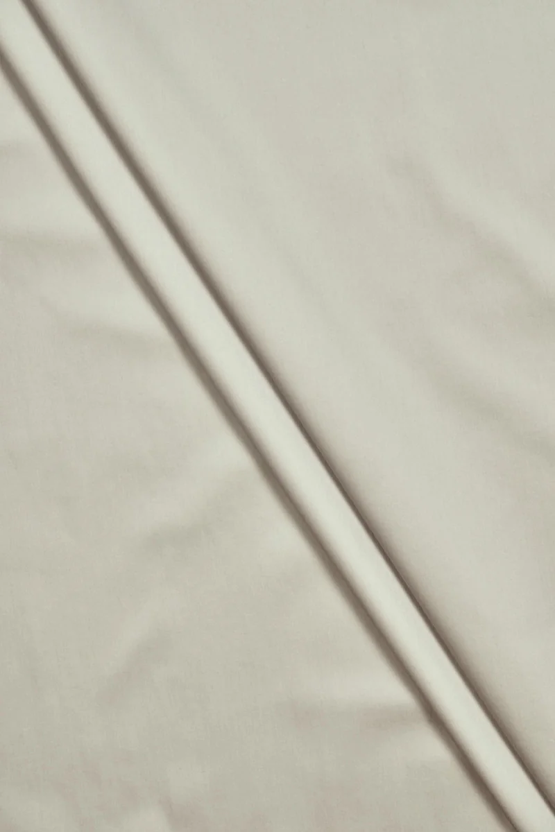 Italienischer Baumwollstoff mit Zusatz von Elasthan in kaltbeiger Farbe. Ein elastischer Stoff mit mittlerer Dicke und matter Webart, der zum Nähen eines Kleides, eines Rocks oder einer Hose bestimmt ist. Natürlicher Stoff von sehr guter Qualität, der Zusatz von Elasthan macht ihn angenehmer zu verwenden und knittert weniger. Ein unersetzlicher Stoff im Frühling und Sommer.