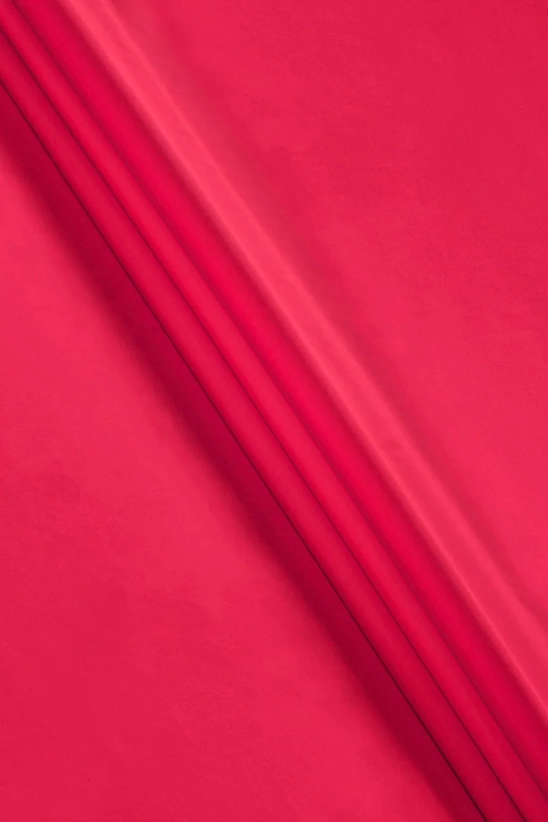 Italienisches Hemd aus Baumwolle, elastisch in himbeerfarbener Farbe. Ein dünner, aber blickdichter Stoff mit glatter Webart, der zum Nähen eines Hemdes, einer Bluse oder eines Kleides bestimmt ist. Natürlicher Stoff von sehr guter Qualität, der Zusatz von Elasthan macht ihn angenehmer zu verwenden und knittert weniger. Ein unersetzlicher Stoff im Frühling und Sommer.