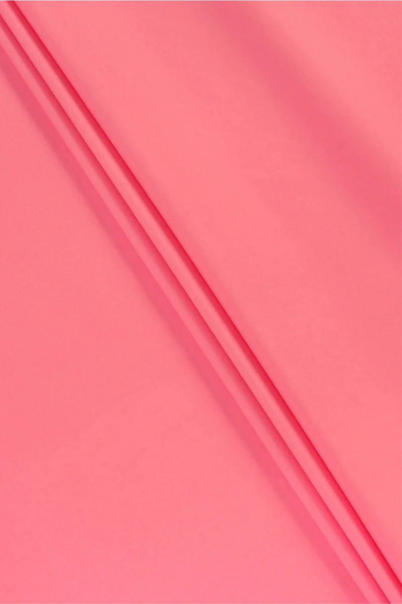 Italienisches Hemd aus Baumwolle, elastisch in Korallenfarbe. Ein dünner, aber blickdichter Stoff mit mattem Gewebe, der zum Nähen eines Hemdes, einer Bluse oder eines Kleides bestimmt ist. Natürlicher Stoff von sehr guter Qualität, der Zusatz von Elasthan macht ihn angenehmer zu verwenden und knittert weniger. Ein unersetzlicher Stoff im Frühling und Sommer.