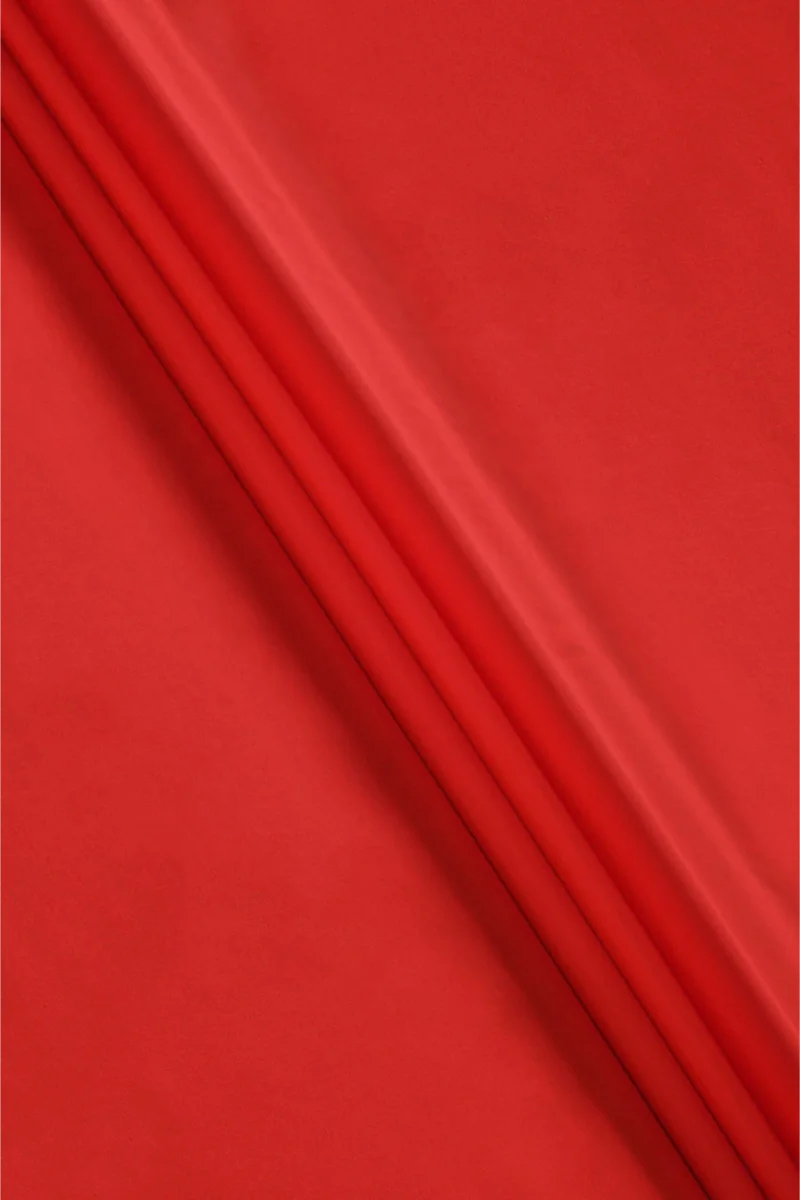 Italienisches Hemd aus Baumwolle, elastisch in rot - karottenfarben. Ein dünner, aber blickdichter Stoff mit glatter Webart, der zum Nähen eines Hemdes, einer Bluse oder eines Kleides bestimmt ist. Natürlicher Stoff von sehr guter Qualität, der Zusatz von Elasthan macht ihn angenehmer zu verwenden und knittert weniger. Ein unersetzlicher Stoff im Frühling und Sommer.