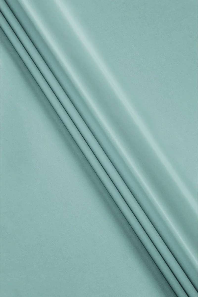 Italienischer Baumwollstoff mit Zusatz von salbeifarbenem Elasthan. Elastischer Stoff mit mittlerer Dicke und glatter, halbmatter Webart, der zum Nähen eines Kleides, eines Rocks oder einer Hose bestimmt ist. Natürlicher Stoff in sehr guter Qualität, der Zusatz von Elasthan macht ihn angenehmer zu tragen und knittert weniger. Der Stoff ist im Frühling und Sommer unersetzlich.