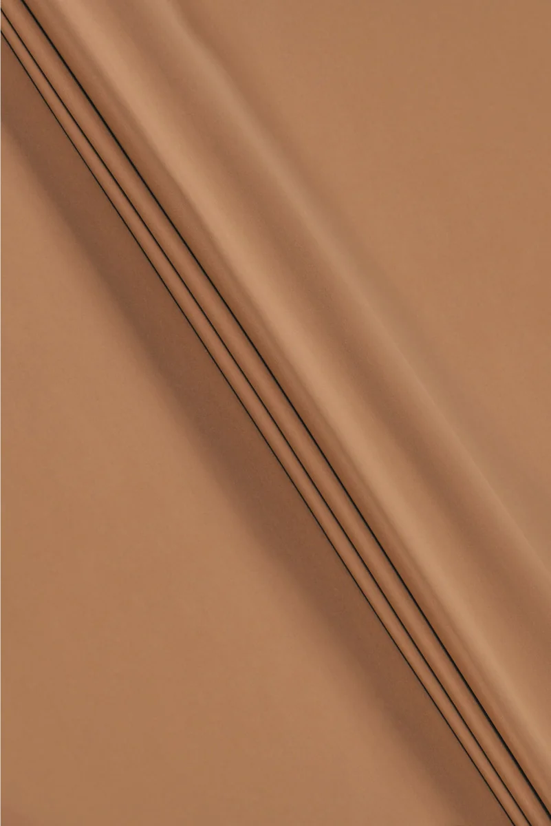 Italienisches Hemd aus Baumwolle, unelastisch in Kamelfarbe. Ein dünner, aber blickdichter Stoff mit glatter Webart, der zum Nähen eines Hemdes, einer Bluse oder eines Kleides bestimmt ist. Natürlicher Stoff in sehr guter Qualität.