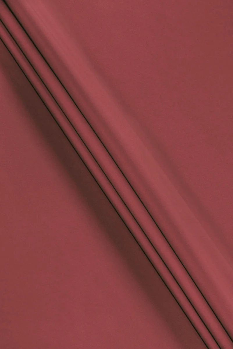 Italienisches Hemd aus Baumwolle, elastisch in hellem Burgunderrot. Ein dünner, aber blickdichter Stoff mit glatter Webart, der zum Nähen eines Hemdes, einer Bluse oder eines Kleides bestimmt ist. Natürlicher Stoff in sehr guter Qualität, der Zusatz von Elasthan macht ihn angenehmer zu tragen und knittert weniger.