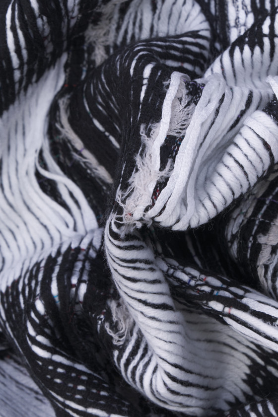 Italienischer Chanel Kostümstoff in schwarz mit écru Faden. Stoff mit konvexer Struktur und engem Gewebe mit einem Spaliermotiv mit einer Größe von +- 11 cm. Der Stoff hat lose Interlaces, die frei geschnitten werden können, dank denen wir den Effekt von Fransen erzielen. Diese Behandlung ermöglicht es Ihnen, individuelle Projekte nach Ihren Wünschen zu erstellen. Ein fantastisches Angebot für Fans von Tweed-Kleidung in zeitlosen Farben und immer modischen Mustern und für Menschen, die einzigartige Kleidung schätzen. In diesem Stoff sind Sie nur durch Ihre Vorstellungskraft begrenzt - kreieren Sie etwas speziell für sich selbst.