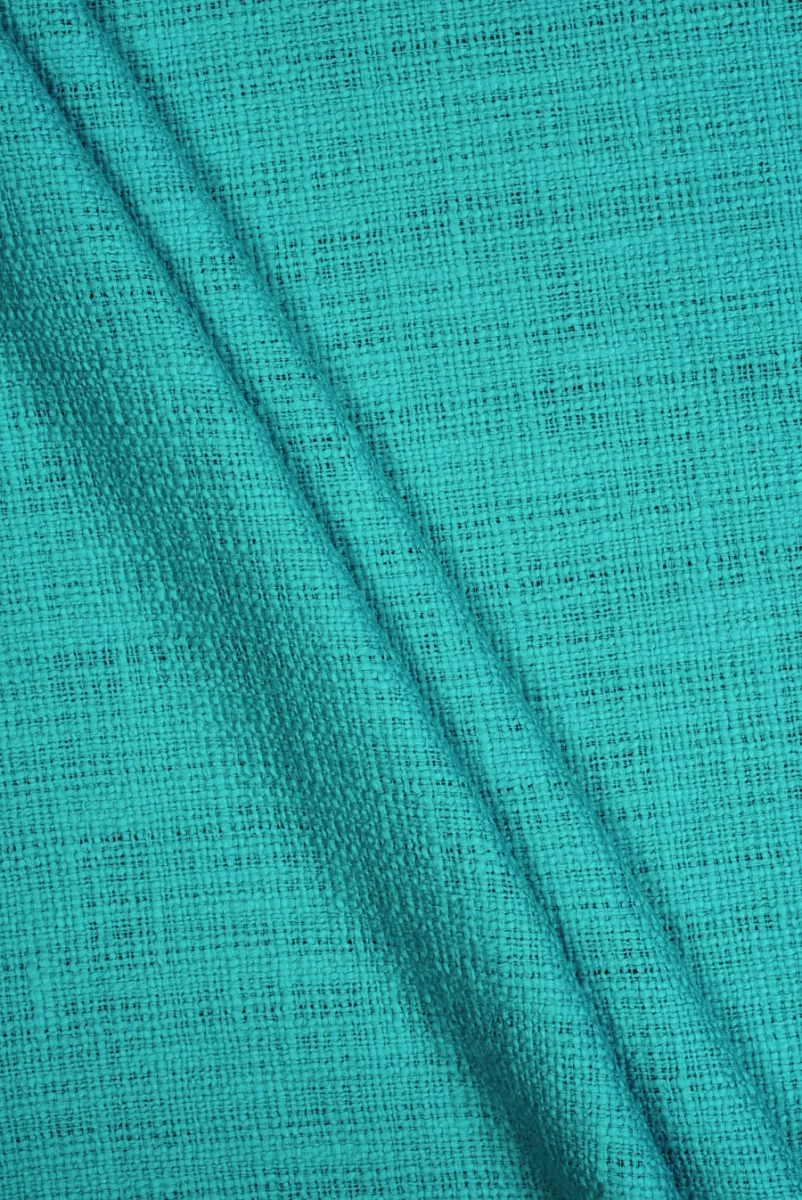 Italienischer Chanel-Stoff, gewebt aus 100% Baumwolle in vier einzigartigen Farben - Grün, Türkis, Beige und Dirty Pink. Der Stoff ist in einem interessanten Gewebe gefertigt, das an Jute erinnert. Der Stoff ist weich, unelastisch, matt, leicht und hat eine ziemlich lockere Webart, die den Stoff nicht völlig blickdicht macht. Ein super Material, das komplett aus Naturfasern besteht, dank dessen Kleidung bequem und angenehm zu tragen ist. Es eignet sich sehr gut zum Nähen von Jacken, Jacken sowie Röcken und Kleidern.