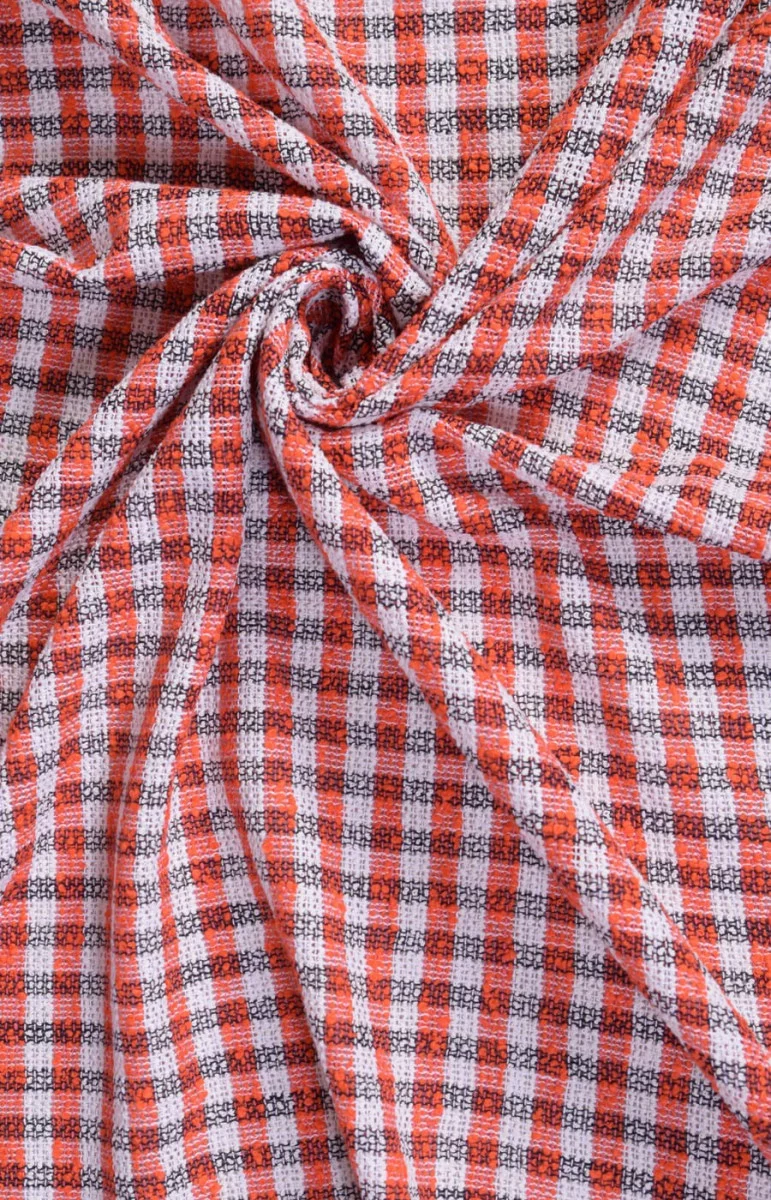 Chanel Kostümstoff mit orangefarbenem, weißem und schwarzem Karo. Perfekt für Jacke + Rock oder Kleider. Es erfordert die Verwendung einer Auskleidung.