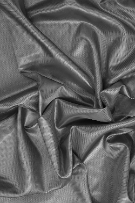 Italienisches Jacquardfutter mit einem Motiv aus sehr kleinen Rauten. Die Kombination von zwei Farben von Fäden, Schwarz und Silber, erzeugt hier einen zweifarbigen Effekt. Der Stoff ist unflexibel mit einem sehr edlen Glanz. Ein schöner und origineller Vorschlag für das Futter einer Jacke, einer Jacke oder eines Mantels.