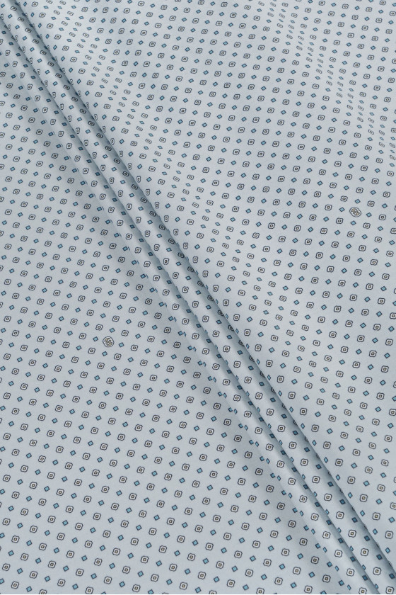 Italienische Hemd Baumwolle in grauer Farbe mit kleinen, geometrischen Mustern. Stoff dünn, unflexibel, leicht steif - ideal zum Nähen eines Kleides, Hemdes, Bluse.