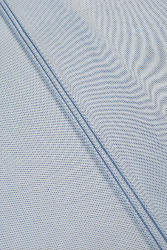 Italienischer Baumwollstoff mit schmalen Streifen in cremeblauer Farbe.