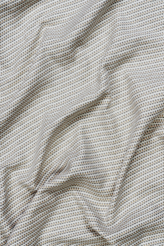 Italienischer Chanel Trachtenstoff in Pastellfarben aus Baumwolle gewebt. Ein zartes Muster aus ineinander verwobenen Fäden in sehr hellem Beige, hellem Orange und grau-beigem Farbton. Der Stoff ist weich, matt, mitteldick mit einer leicht lockeren Webart. Es ist perfekt für eine Jacke, einen Rock oder ein Kleid.
