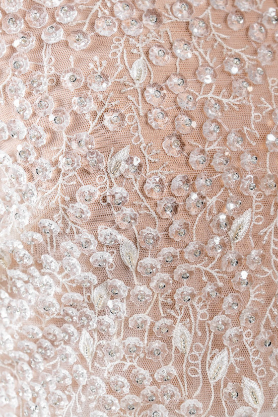 Schöne, reich verzierte Hochzeitsapplikation für ein Korsett. Perfekt für Brautkleider.