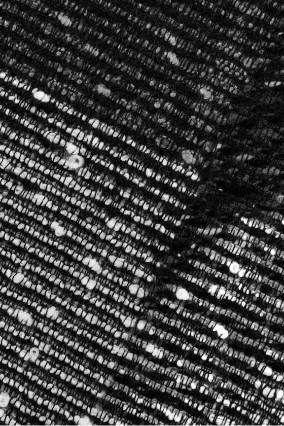 Italienischer Stoff mit einem interessanten grau-schwarzen Muster. Gewebt aus natürlicher Wolle mit einer Beimischung von Viskose und Polyester. Weicher Stoff, perfekt zum Nähen einer Strickjacke, eines Pullovers oder eines Kleides. Wir empfehlen eine chemische Reinigung.