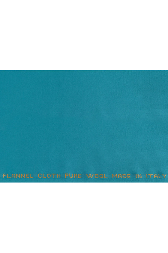 Italienische Kostümwolle von Flanellarten in türkisfarbener Farbe. Dickerer, fleischiger Stoff des Herbst-Winter-Genres - ideal zum Nähen von Anzug, Kleid, Rock, Hose oder Kostüm.