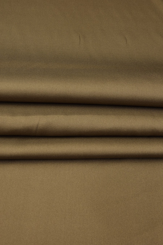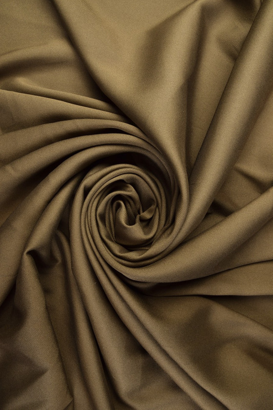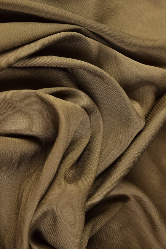 Elastische Seide in olivfarbener Farbe. Sie können luftige Kleider, zarte Blusen, Röcke daraus zaubern. Es kann auch als Grundlage für zartere Seide und Spitze verwendet werden.