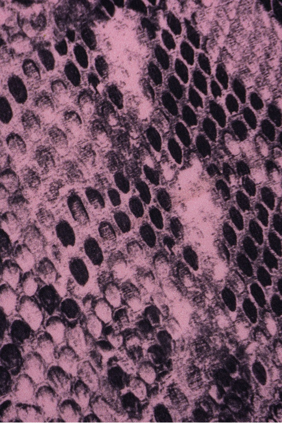 Italienischer Crêpe 100% Seide mit einem schönen Schlangenhautmotiv im originalen schwarz-rosa Farbschema.