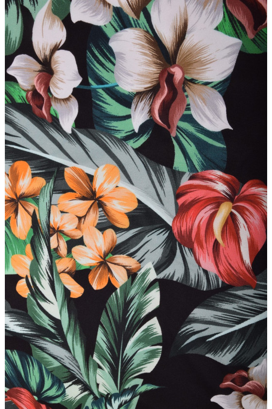 Seidenkrepp mit Elasthan ist ein zarter, samtiger, halbtransparenter Stoff. Mit Dschungelprint können Sie luftige Kleider, zarte Blusen, Pareos zaubern. Wir empfehlen die Verwendung eines Futters.