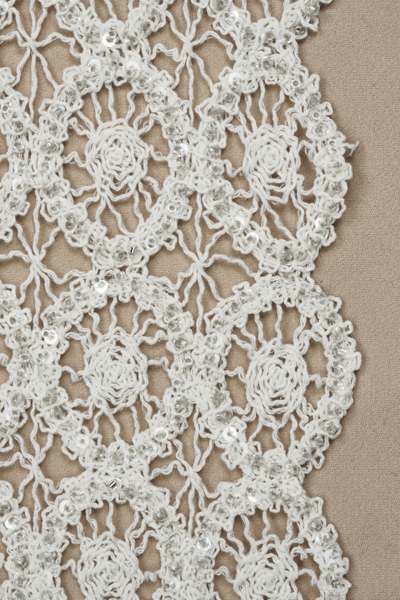 Durchbrochene Spitze mit cremefarbenen Perlen