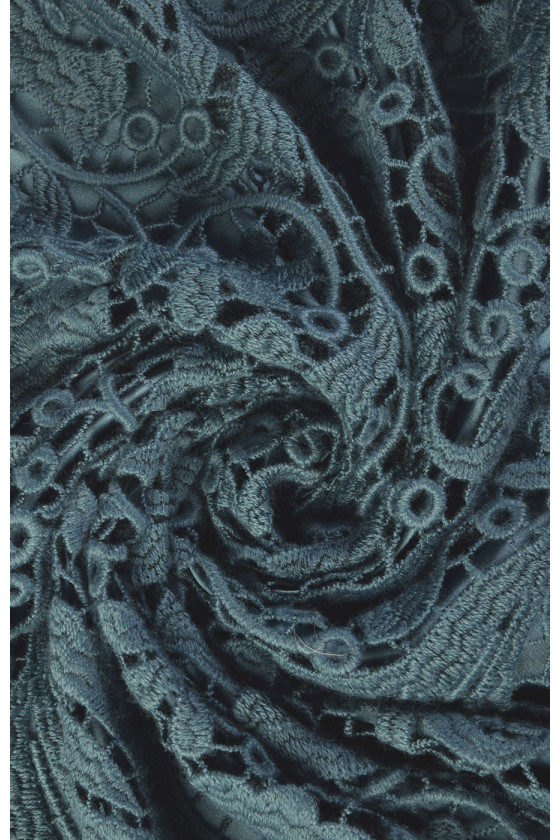 Der letzte coupon Guipure-Spitze in blaugrünem Türkis mit den Maßen: 75 cm* 120 cm.