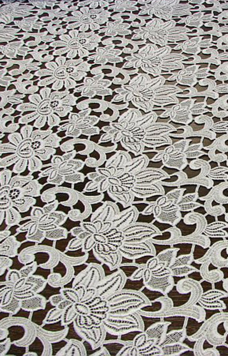 Guipure ist eine spezielle Art von Gewebe, die sich durch große, unregelmäßige Maschen auszeichnet. Sie können in verschiedenen Mustern angeordnet werden, z. B. floral oder geometrisch. Spitzenstoffe dieser Art erinnern ein wenig an Stickereien, obwohl die Technik ihrer Herstellung völlig anders ist. Moderne Guipure werden meist aus Polyester oder Elasthan hergestellt. Sehr oft wird Guipure verwendet, um Kleidung zu verzieren – Shorts, Blusen oder Kleider. Es kann auch die Grundlage für die Kreation eines ganzen Outfits sein, zum Beispiel eines eleganten Kleides.