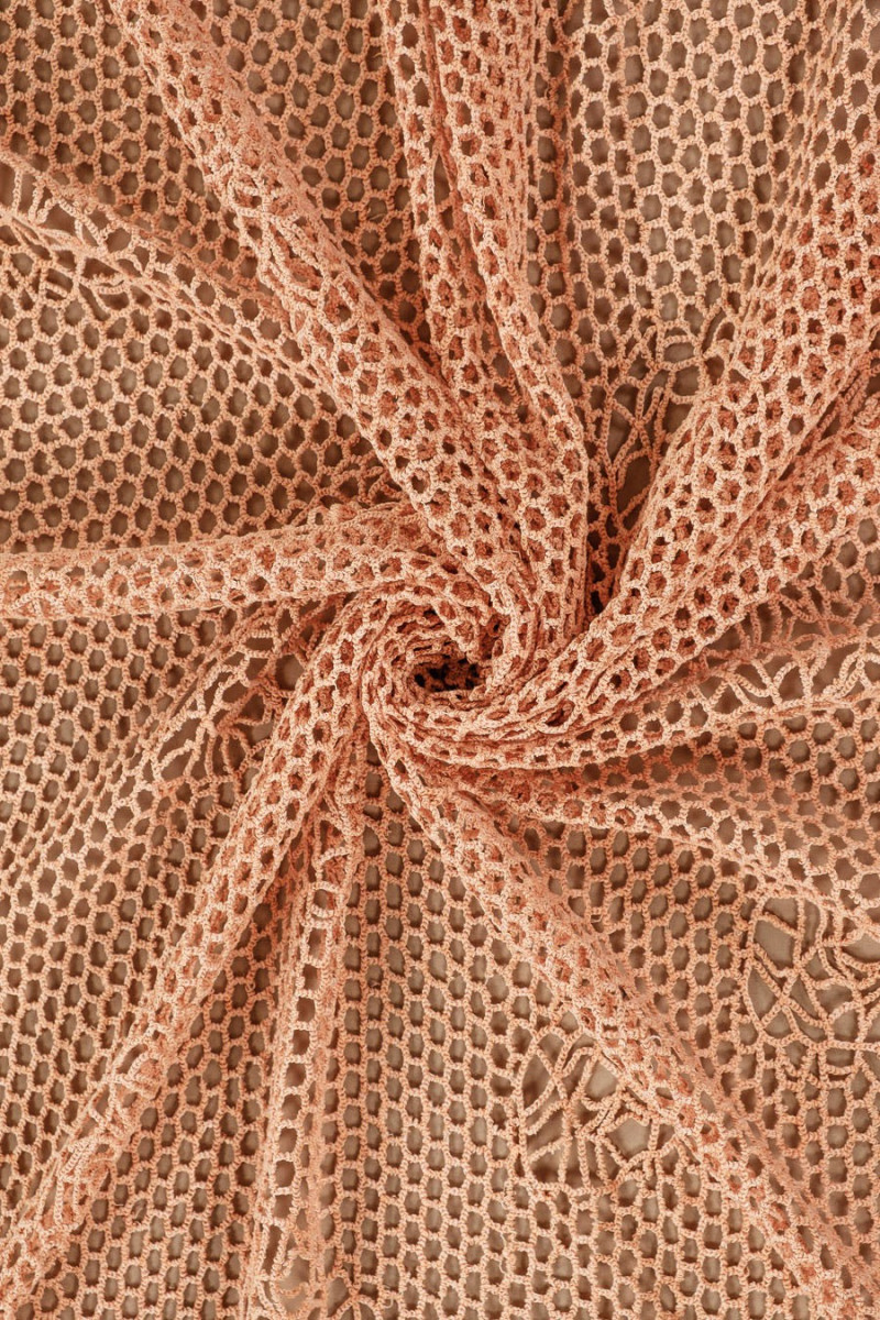 Guipure-Spitze mit orangefarbener lachsfarbener Mesh-Struktur. Perfekt für durchbrochene Kleider oder Blusen.