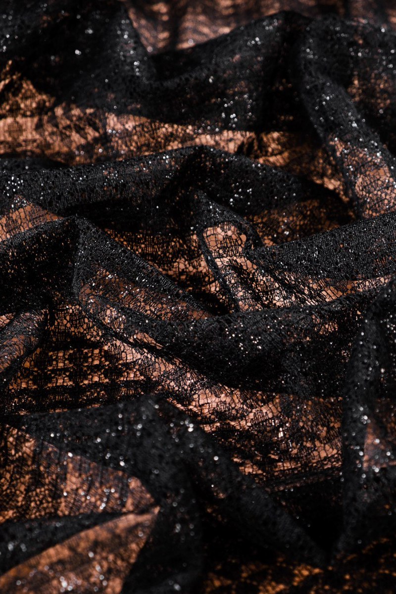 Schöne französische Spitze in Schwarz mit glänzendem Lurexfaden. Dichtes Motiv aus vertikalen Streifen - die Spitze hat keinen dekorativen Zahn. Der Stoff ist 88 cm breit.