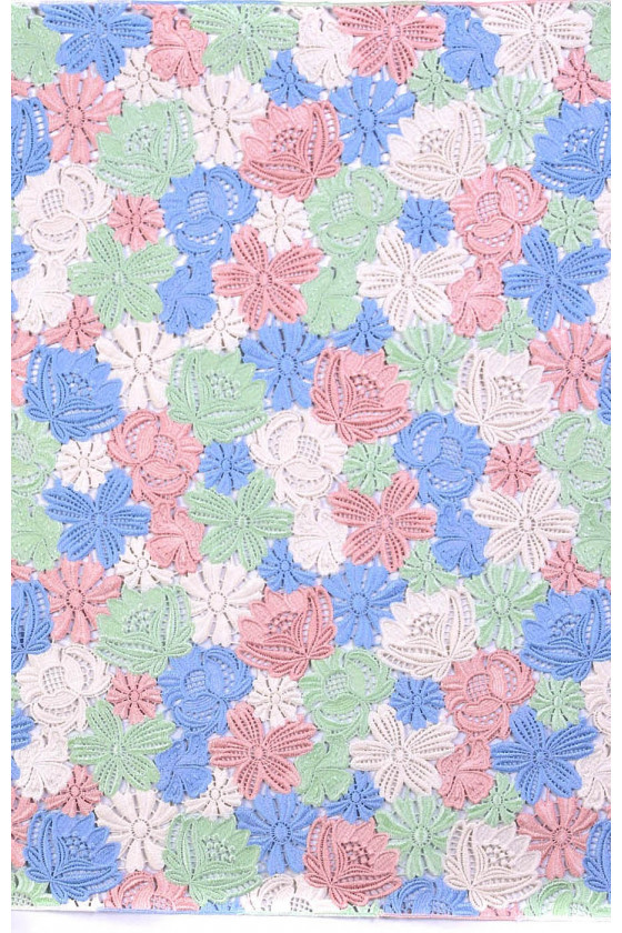 Schöne florale Guipure-Spitze in Pastellfarben. Schwerer, dicker Stoff. Perfekt für Röcke, Kleider oder zum Ausschneiden von Elementen. Die Breite der Spitze beträgt 45 cm.