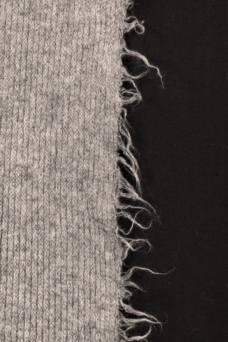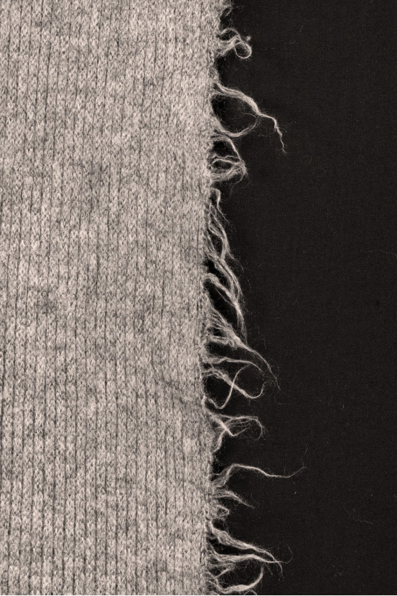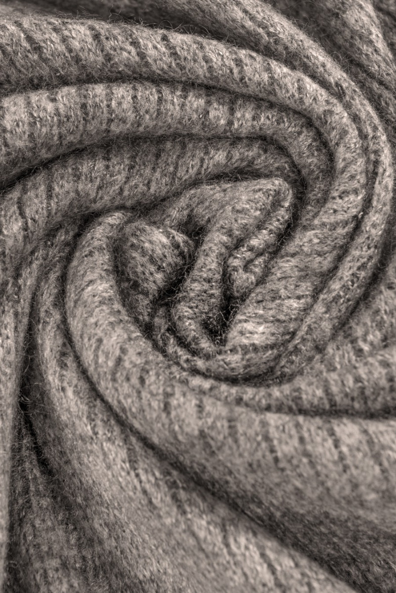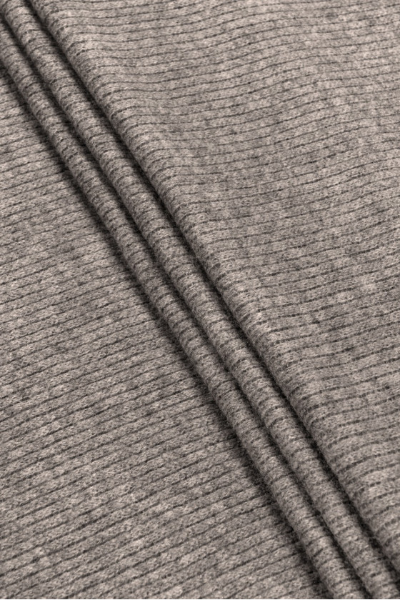 Italienischer Pullover mit einer dickeren, lockeren Webart. Fleischig, elastisch, perfekt zum Nähen eines Pullovers oder Rollkragenpullovers. Farben: grau-beige melange.
