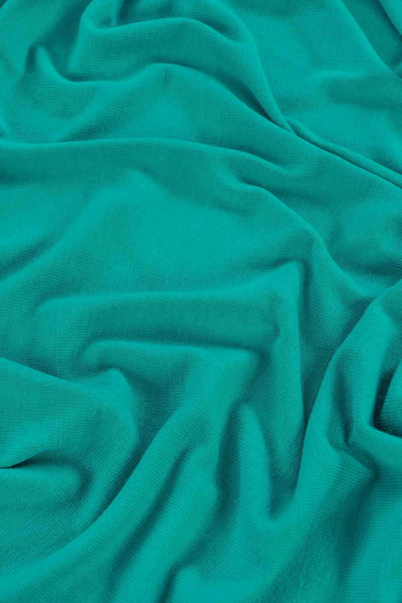 Pullover Strickwaren in türkisfarbener Farbe für Pullover oder Schals. Stoff aus Acrylfäden gewebt.
