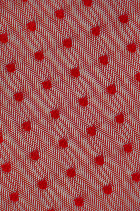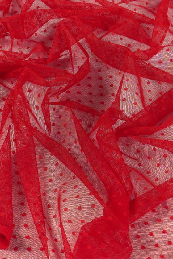 Italienischer, weicher gepunkteter Tüll in Rot. Elastischer Stoff auf einer Seite, weich, transparent.