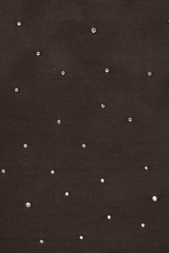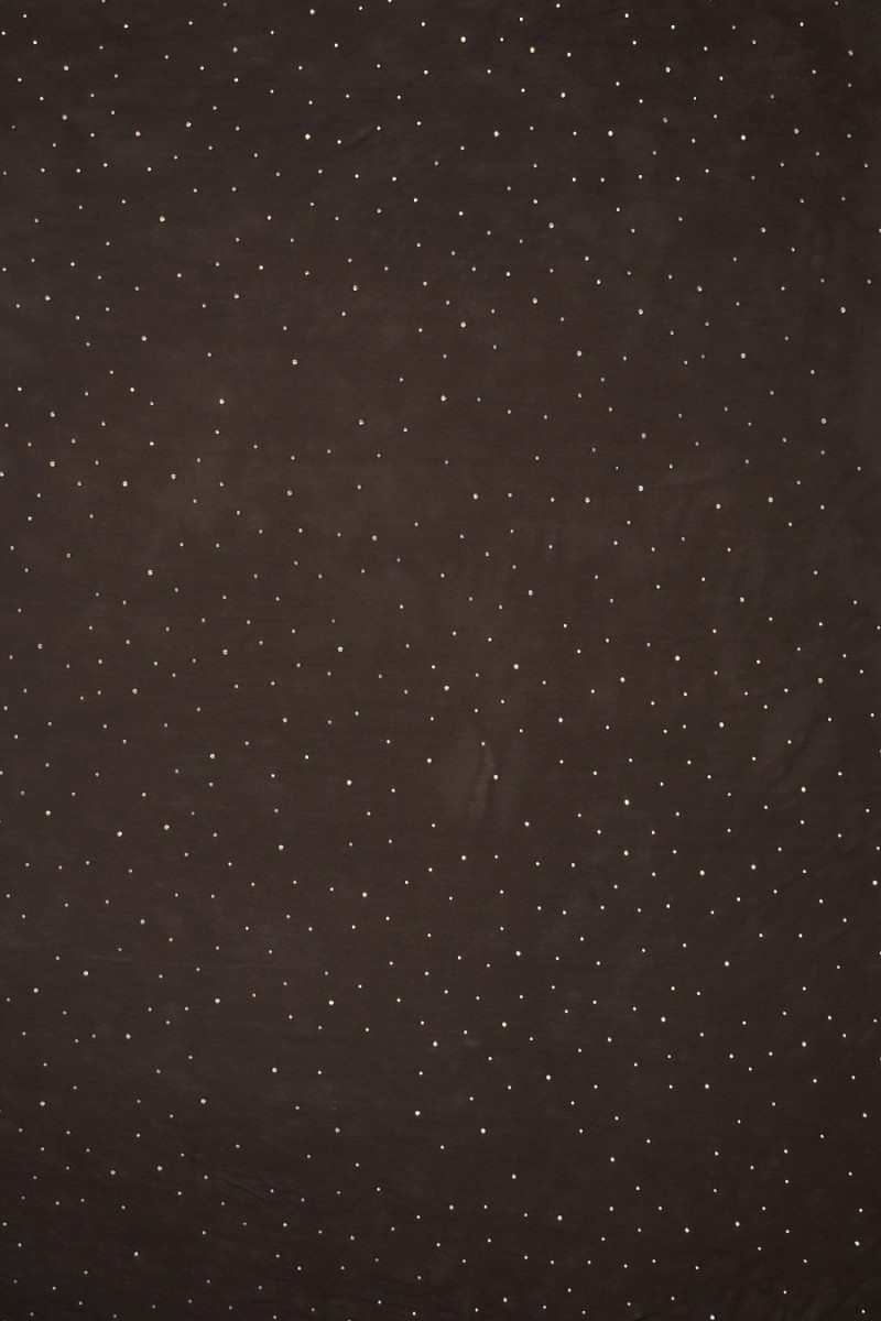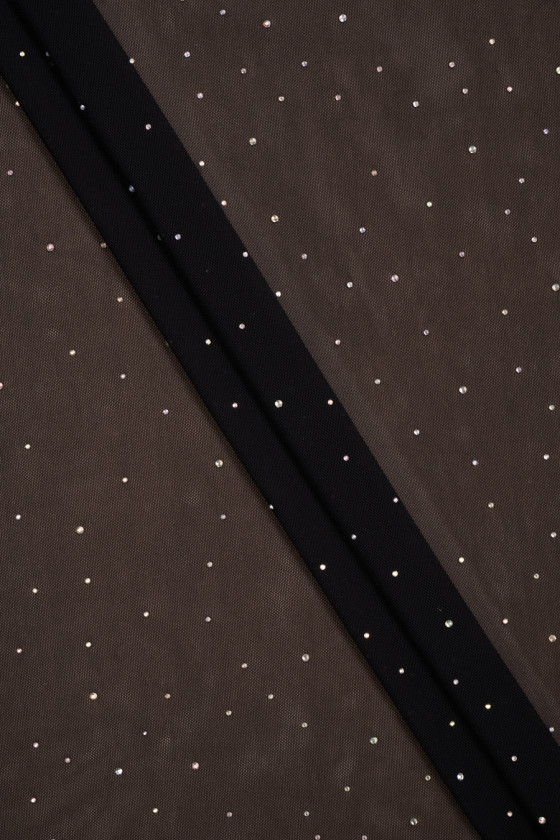 Italienisches elastisches Netz in beide Richtungen in schwarz mit verleimtem mehrfarbigem Zirkonia. Dünner, transparenter, weicher, elastischer Stoff - perfekt zum Nähen einer Abendbluse, eines Kleides, eines Rocks oder zum Veredeln.