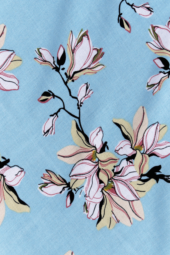 Viskose ist ein äußerst subtiles Material – gut geschnitten, passt es sich perfekt an jede Figur an und unterstreicht ihre Vorzüge. Der Stoff wird durch chemische Behandlung von Zellulose hergestellt. Das bedeutet, dass es aus nachwachsenden natürlichen Ressourcen hergestellt wird. Dieses Material ist also ökologisch, aber gleichzeitig sehr effektiv. Viskose ist ein leichtes und luftiges Material, dessen Aussehen und Struktur an Baumwolle erinnern. Es ist sehr atmungsaktiv und eignet sich daher für die Herstellung typischer Sommerkleidung. Es zeichnet sich auch durch Hygroskopizität aus, was bei heißem Wetter eine äußerst wünschenswerte Eigenschaft ist. Darüber hinaus sind Viskosestoffe sehr langlebig. Sie können viele Male gewaschen werden, ohne sich Sorgen machen zu müssen, dass sie Farben verlieren oder schneiden. Ein weiterer Vorteil von Viskosematerialien sind ihre langanhaltenden Farben, die nicht verblassen oder auswaschen. All dies bedeutet, dass Kleidung aus Viskose eine Anschaffung ist, die viele Jahre lang funktioniert.