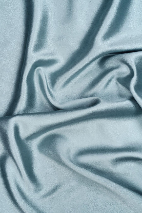 Italienischer Jacquardstoff mit zarter Struktur in Graublau. Der Stoff ist blickdicht, unelastisch, mit einem schönen Glanz versehen, von mittlerer Dicke und fällt leicht steif. Ein ausgezeichnetes Angebot für formelle Outfits für Menschen, die elegante Materialien in einer ruhigen Ausgabe suchen. Es kann verwendet werden, um Kleider, Röcke und leichte Oberbekleidung zu kreieren.