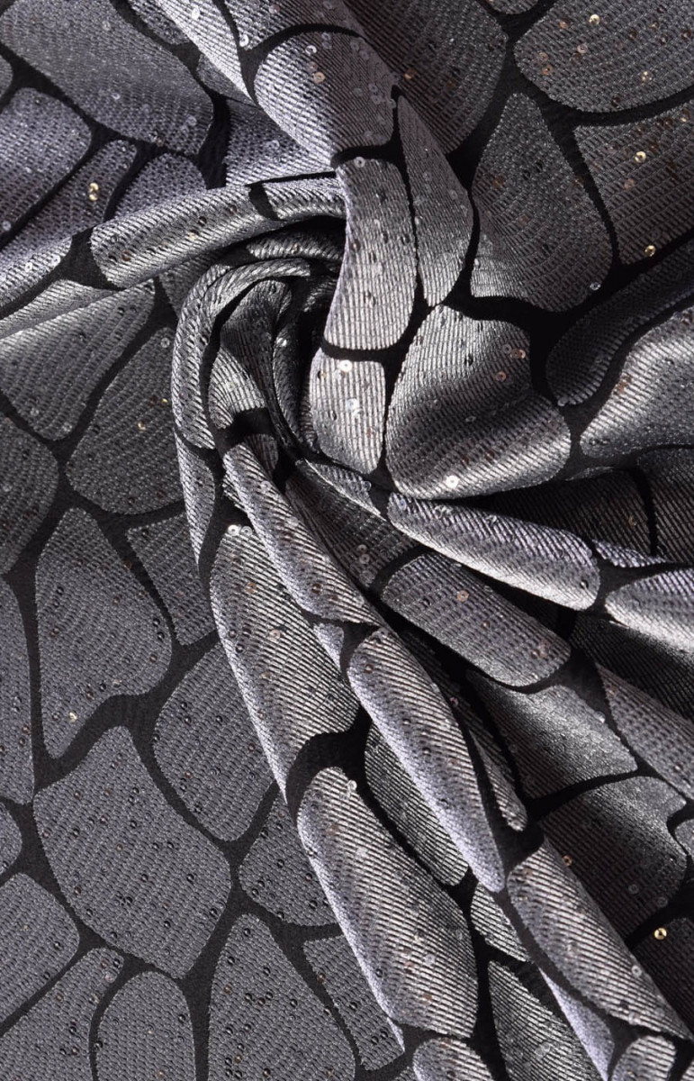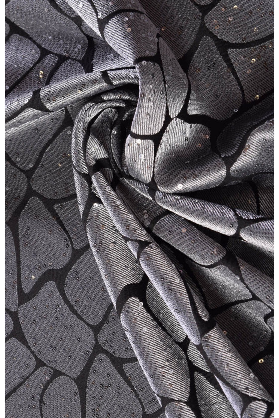 Phänomenaler Jacquard, bestickt mit kleinen Pailletten. Der Stoff ist unelastisch, leicht steif. Perfekt für Kostüme, Jacken, Röcke und dünne Mäntel.