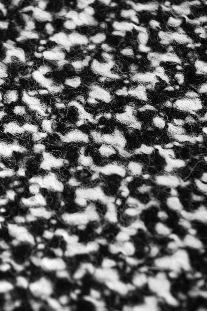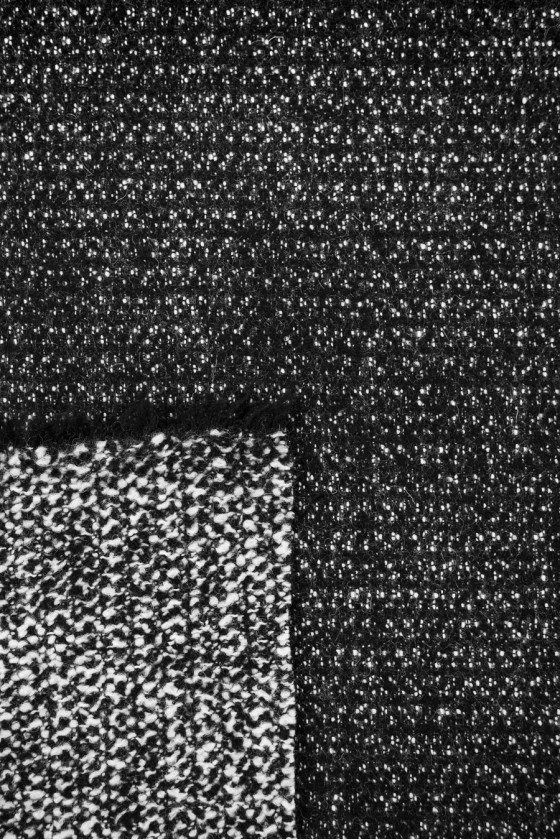 Italienischer Mantelstoff aus 100% naturbelassener Wolle in Weiß und Schwarz.