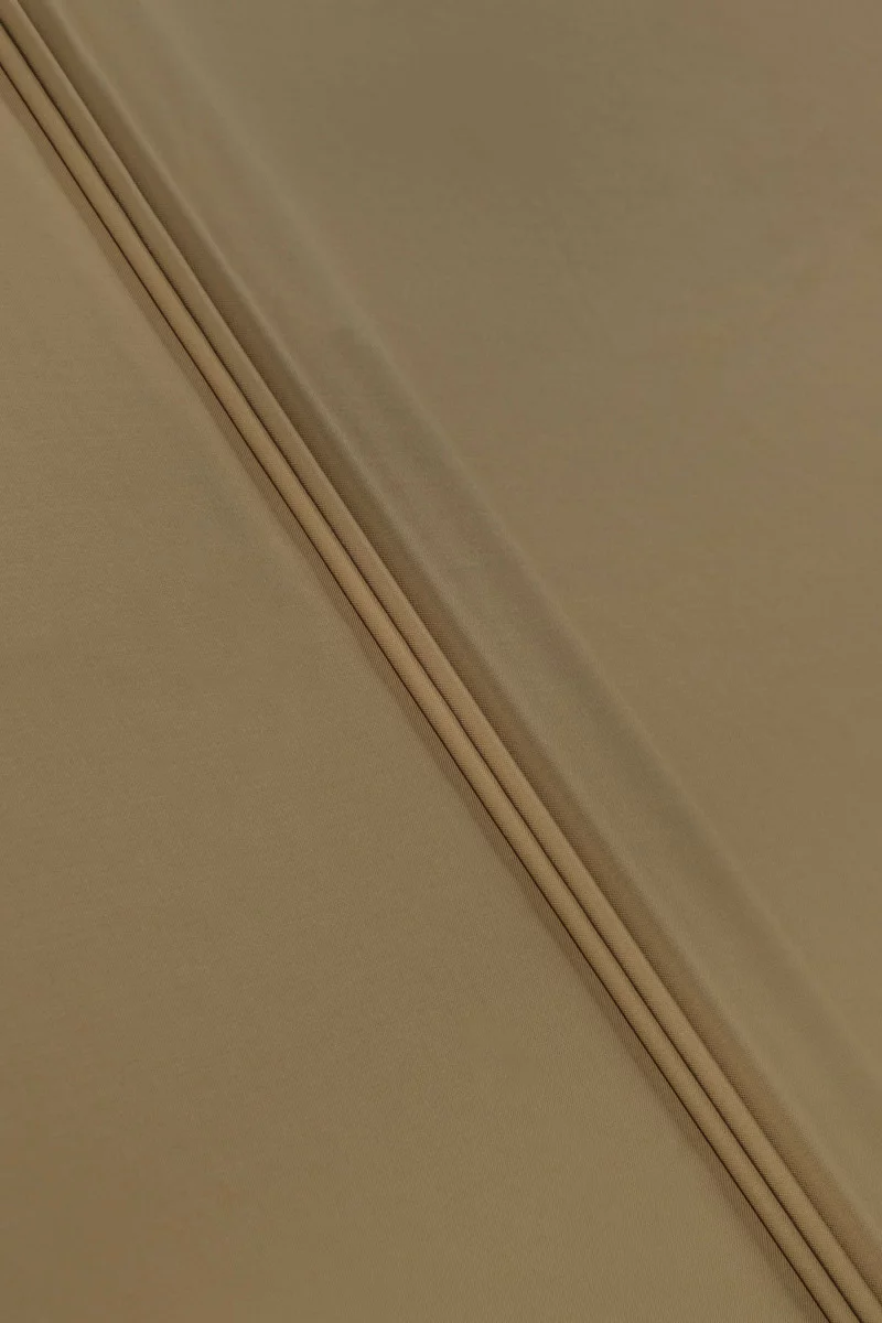 Italienischer Kostümstoff aus 100 % Wolle, natürlicher in olivgrünem Beige. Der Stoff ist unelastisch, mittlerdick mit glattem, mattem Gewebe. Er eignet sich perfekt zum Nähen eines klassischen Anzugs, Kleids, Rocks oder einer Hose. Ein natürlicher Stoff in einer zeitlosen Farbe für Menschen, die hellere Farben mögen.