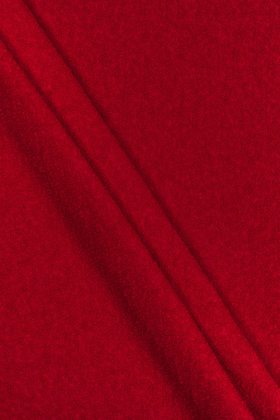 Italienischer Wollstoff mit Zusatz von Polyamid in Form eines zarten Bucles in Rot und Fuchsia. Das Gewebe ist von mittlerer Dicke, unelastisch, matt, mit einer deutlich wahrnehmbaren Struktur. Ein Vorschlag, der perfekt für leichte Mäntel, Jacken, Jacken und Röcke geeignet ist.