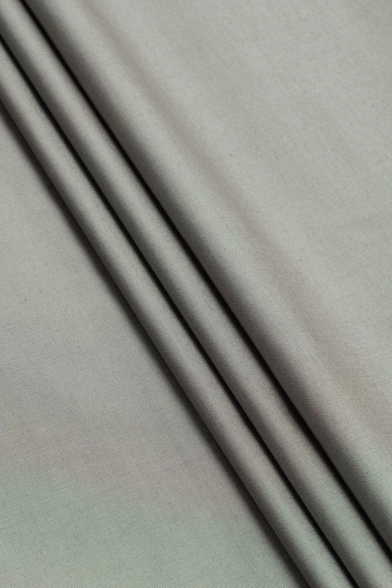 Italienischer Kostümstoff aus 100 % natürlicher Wolle mit einem sehr feinen Muster, das einem Würfel ähnelt. Der Stoff besteht aus drei Fadenfarben: Grau, Beige und Écru. Das Material ist unelastisch mit mittlerer Dicke. Er eignet sich perfekt zum Nähen von Kleidung wie Anzug, Kostüm, Kleid, Rock oder Hosen.
