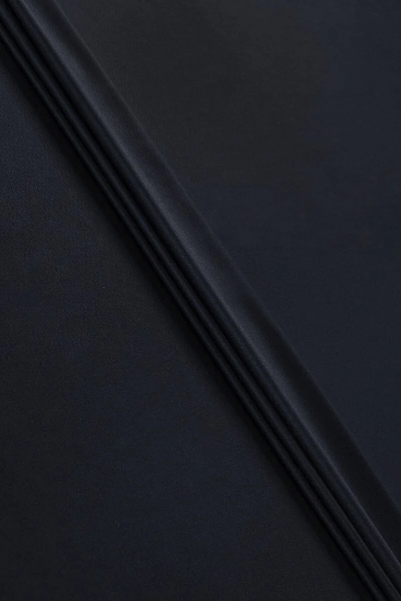 Italienische Kostümwolle in marineblauer Farbe mit einem interessanten, feinen Jacquardgewebe. Stoff weich, dünner, unflexibel mit einem schönen Glanz - perfekt zum Nähen eines Kostüms, Anzug, Hose, Rock, Kleid.
