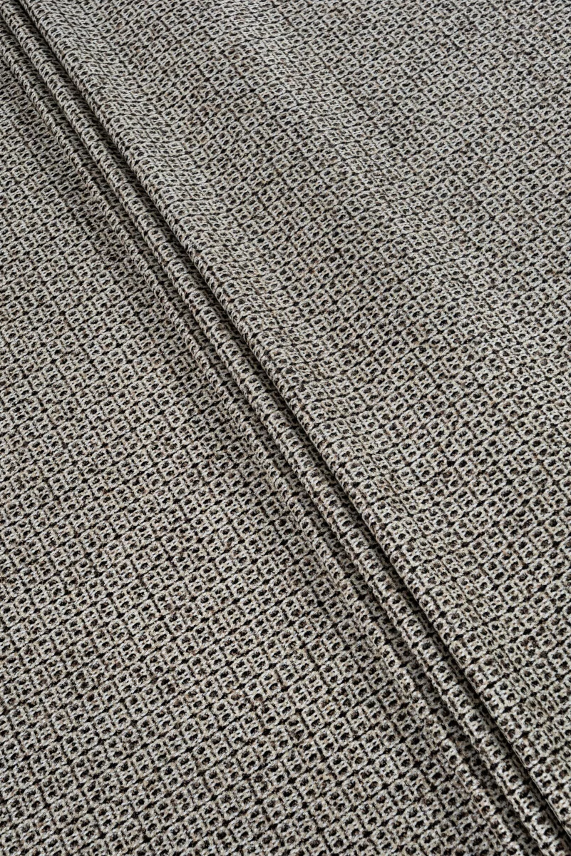 Italienischer Trachtenstoff gewebt aus Woll- und Polyamidfäden. Ein sehr interessantes, kleines geometrisches Muster in Beige, Braun und Schwarz. Der Stoff ist dicker, fleischiger - perfekt für Herbst- und Winterkleidung. Sie können damit interessante Mäntel, Jacken oder Jacken kreieren.