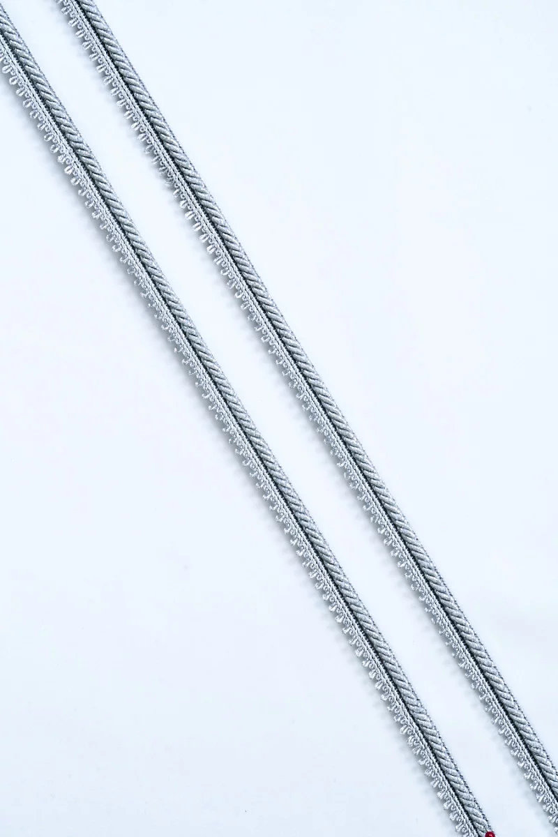 Italienisches Kurzwarenband 1,3 cm breit. Das Band besteht aus zwei Arten von Silberschnur. Das perfekte Finish für eine elegante Jacke oder ein elegantes Kleid.
