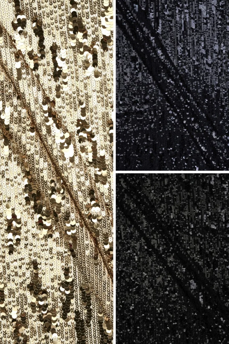 Paillettenmaterial ist ein Stoff, Mesh oder Gestrick, auf dem Pailletten aufgenäht wurden, d.h. glänzende, dünne Elemente mit einem Loch zum Nähen. Meistens handelt es sich dabei um runde Dekorationen, die aber auch facettenreich oder lockig sein können. Mit Pailletten verzierte Outfits sind sowohl bei jungen Mädchen als auch bei erwachsenen Frauen beliebt. Darüber hinaus erscheint die Mode für sie in regelmäßigen Abständen. Wenn du also ein Kleid aus Paillettenstoff nähst, wirst du es sicherlich viele Saisons lang tragen können. Glänzende Details ziehen die Blicke auf sich und heben den Look jedes Outfits auf das nächste Level.