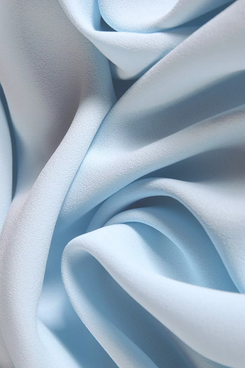 Italienisches Cadi-Kleid Stoff mit Georgette-Gewebe in einer breiten Farbpalette. Der Stoff des Kleides Cadi ist blickdicht, fleischig, fließend (schwer), unelastisch, die Georgette-Bindung verleiht ihm eine charakteristische, körnige Struktur. Es kann zum Nähen von Kleidern, Blusen, Röcken, Hosen und Kostümen verwendet werden.