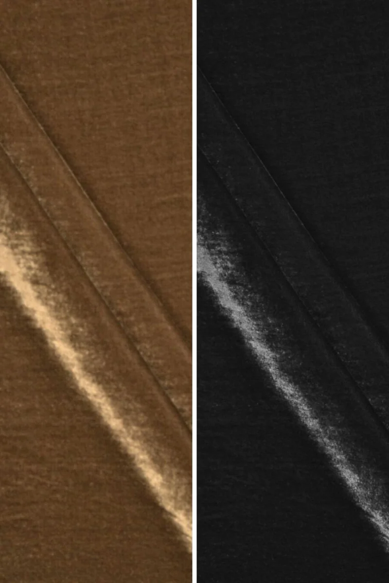 Velours ist eine dünne Sorte von Samt. Auf der einen Seite hat er ein niedriges, weiches und flauschiges Fell, das oft als Flaum bezeichnet wird. Die meisten Arten von Stoffen werden hergestellt, indem zwei Fäden auf eine bestimmte Weise miteinander verwoben werden. Bei Samt haben wir es mit vier zusätzlichen Fäden zu tun, die das Vlies bilden. Sie werden zwischen zwei meist Fäden in Form von geschlitzten (geschorener Samt) oder ungeschnittenen (Schlingensamt) Schlaufen eingesetzt. Das macht dieses Material so weich und fühlt sich sehr angenehm an. Dank der speziellen Webmethode zeichnet es sich immer noch durch einen tiefen Glanz aus und reflektiert das Licht wunderschön!