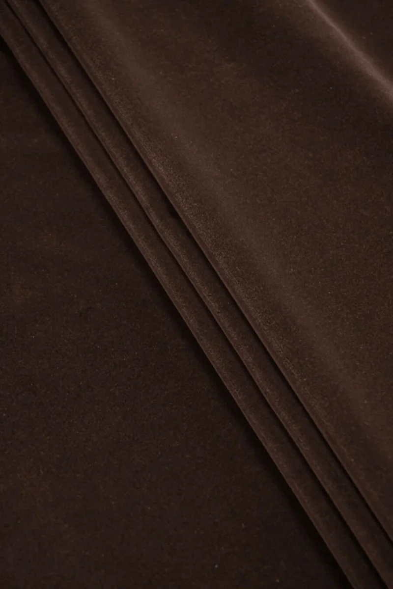 Italienischer Samtstoff in Braun. 100% natürlicher Stoff, gewebt aus Baumwolle mit einem charakteristischen, sehr kurzen Haar. Ein idealer Vorschlag zum Nähen eines Kostüms oder einer Jacke, da Samt fleischig, unelastisch mit einer engen Webart und matt ist. Es kann auch in der Innendekoration weit verbreitet sein, z. B. zum Nähen von Vorhängen oder Kissen.